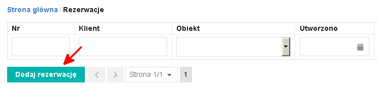 Wybieramy z menu systemowego zakładkę Rezerwacje, a następnie przycisk Dodaj rezerwację.