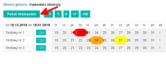 Miesiące w kalendarzu zmieniamy przyciskami znajdującymi się nad kalendarzem.